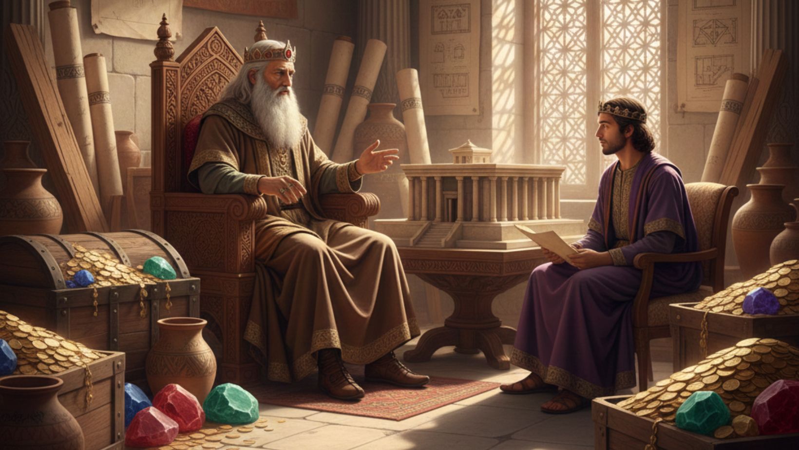 • 1 Chronicles 28: David charges Solomon to build the Temple