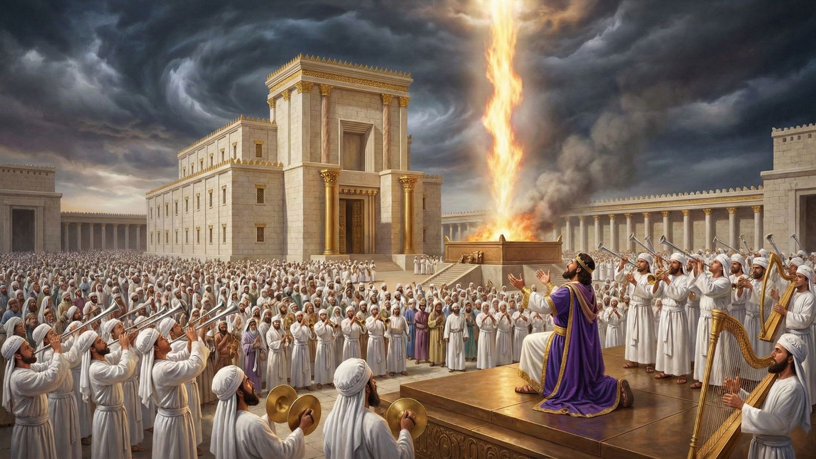- 2 Chronicles 7: Fire falls; God responds to Solomon