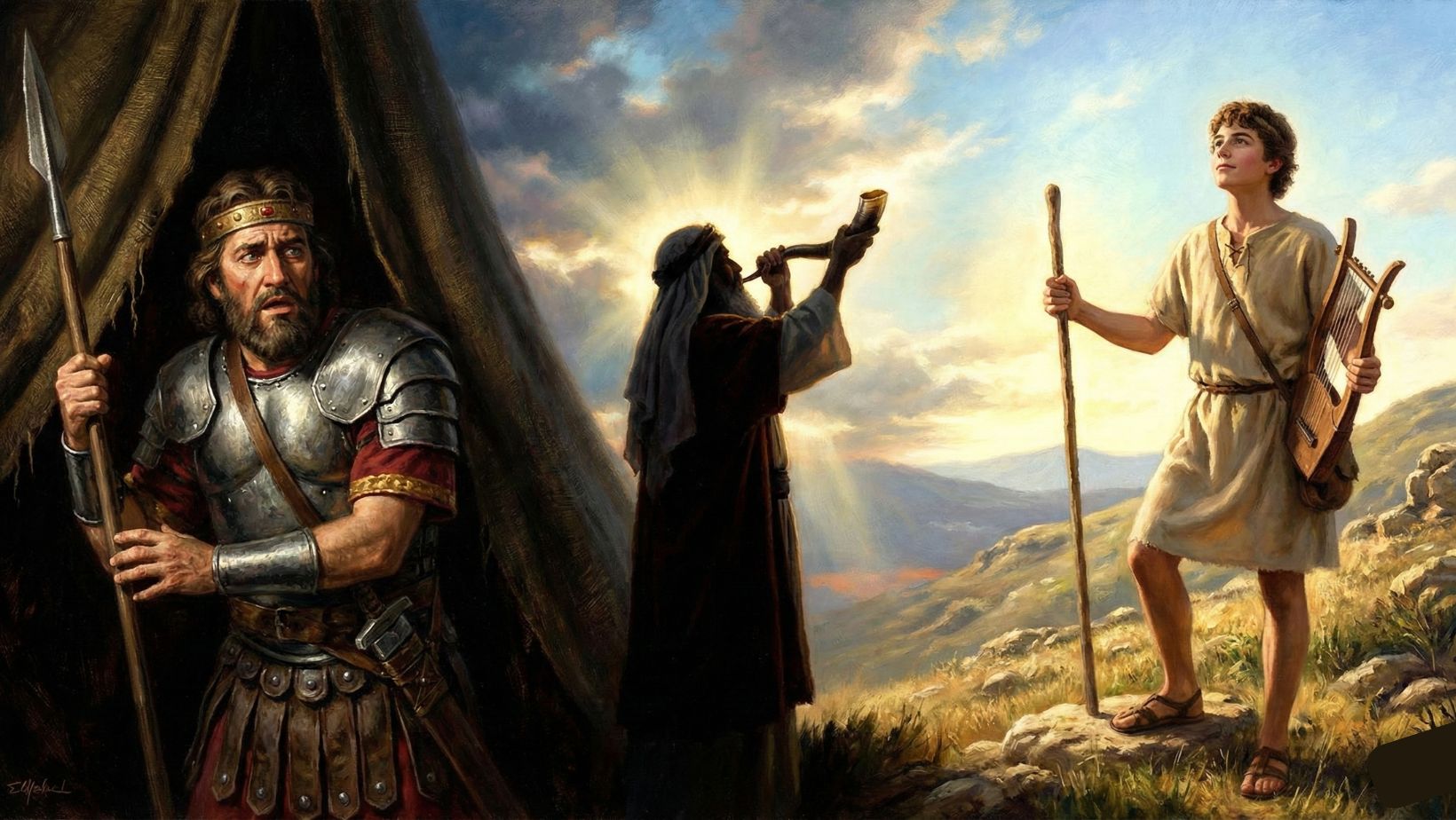 Saul: A tragic figure. He starts with promise—humble and physically impressive—but is consumed by insecurity, fear of man, and jealousy. He represents leadership in the flesh.