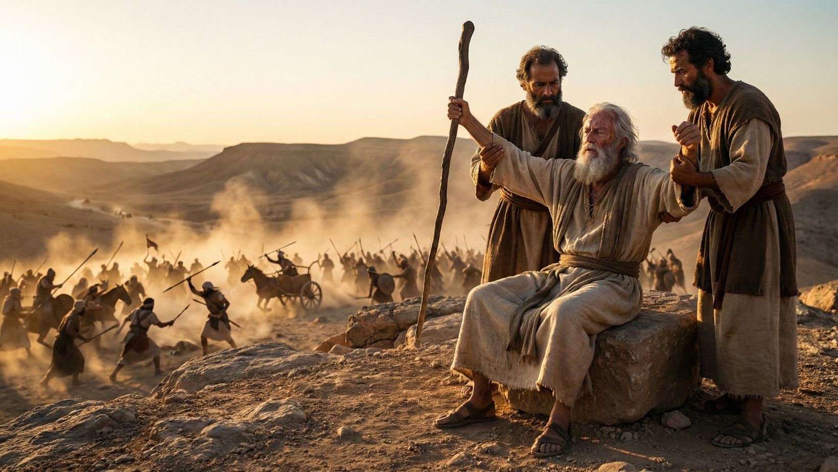 • Intercession and Victory (v. 11): The lifting of hands was a universal posture of prayer (Psalm 28:2, 1 Timothy 2:8). The text establishes a direct cause-and-effect relationship: spiritual intercession determines physical outcomes. When prayer (dependence) wavered, the enemy advanced.