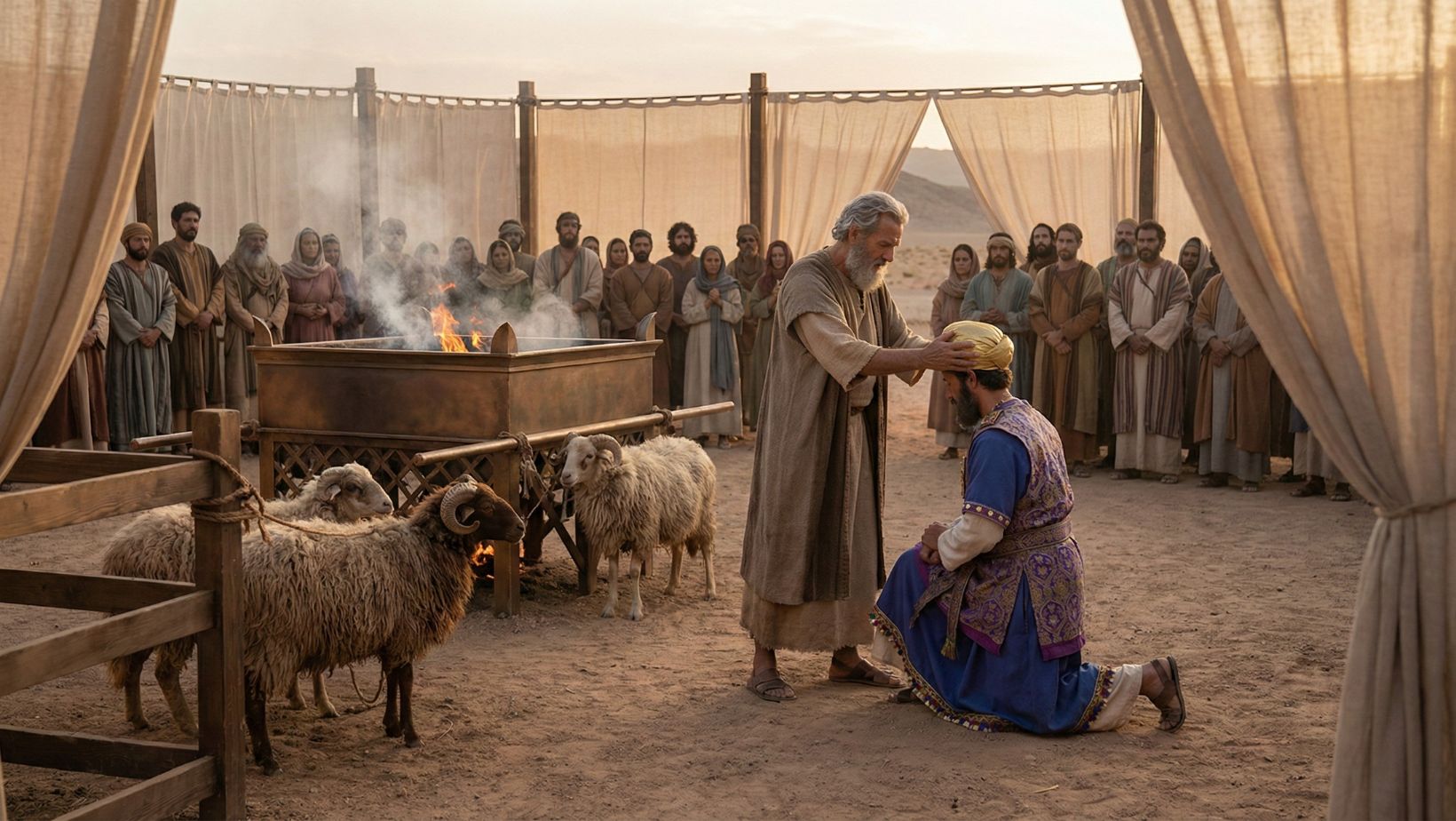 Exodus 29 details the elaborate seven-day consecration ceremony for Aaron and his sons, officially setting them apart as priests for the nation of Israel. This chapter serves as the operational manual for the garments described in chapter 28. It outlines the necessary purifications, vestments, anointing, and specific sacrifices required to transition sinful men into holy mediators. The rituals involve washing with water, clothing in holy garments, anointing with oil, and a three-part sacrificial system (sin offering, burnt offering, and peace/ordination offering). The chapter concludes with instructions for the daily morning and evening sacrifices, anchoring the promise that God will dwell among His people.