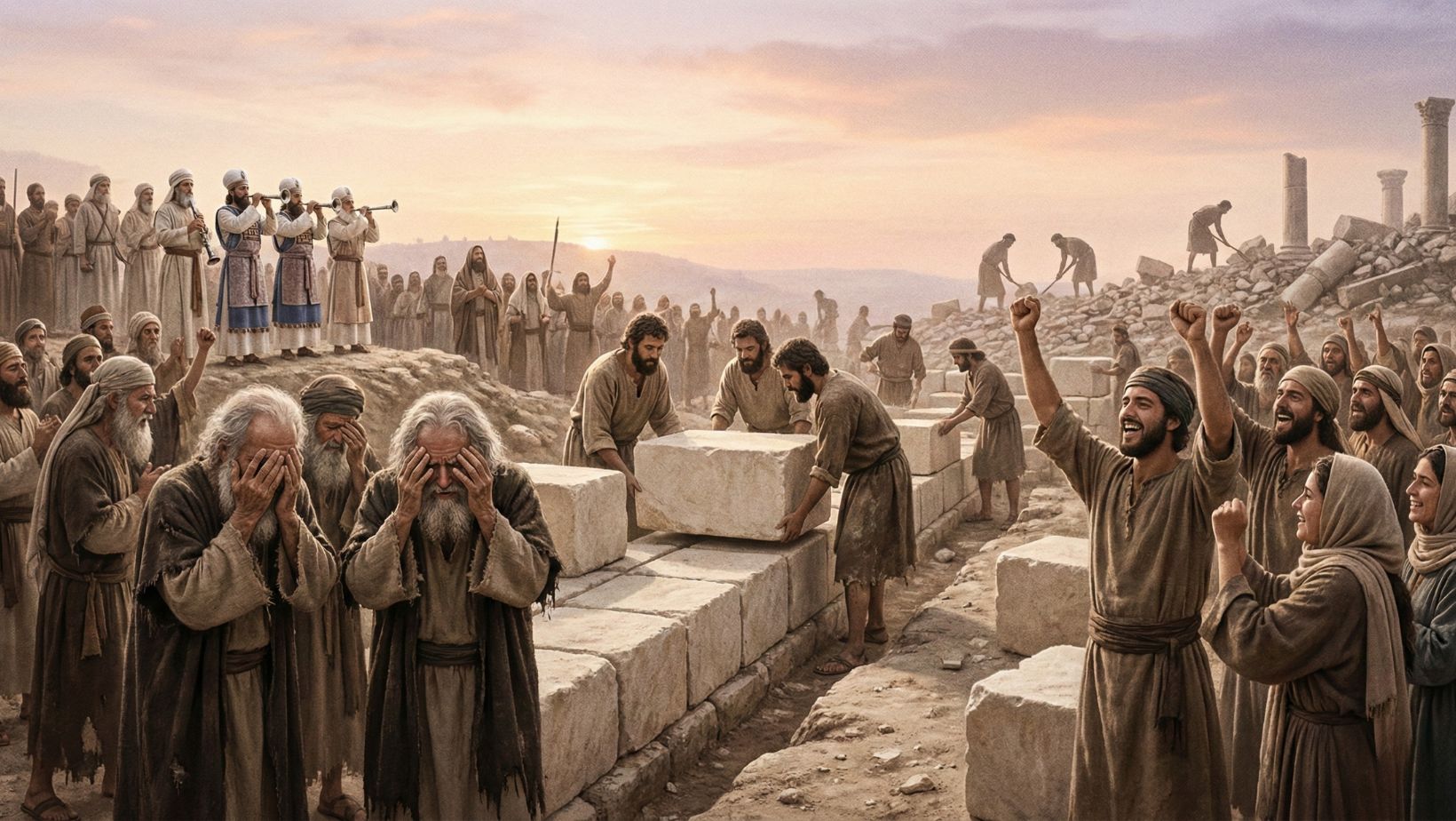 - Ezra 3: Altar rebuilt; foundation of the Temple laid