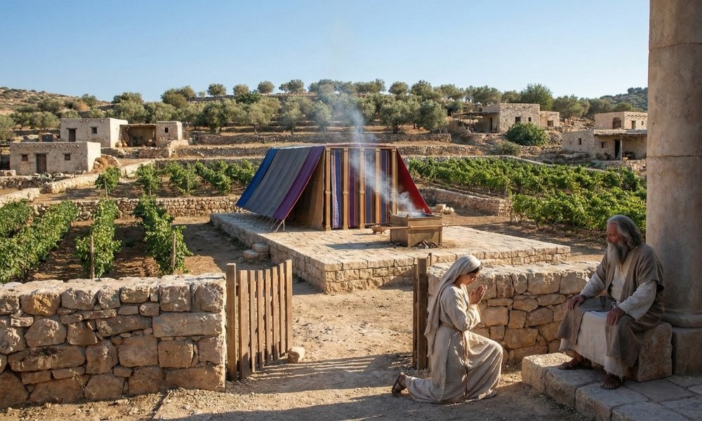 Hannah’s Vow: The barren woman Hannah came to the Tabernacle at Shiloh, weeping and praying. Her vow to dedicate her son to God resulted in the birth of the prophet Samuel (1 Samuel 1).