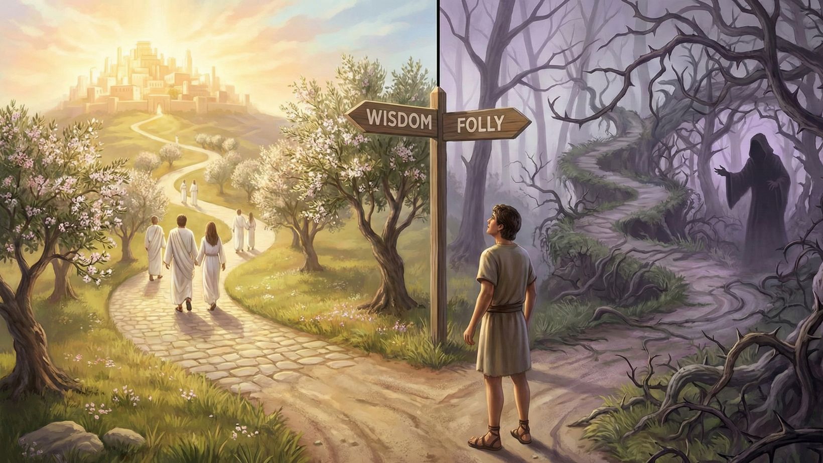 - Proverbs 9: Wisdom invites; folly also calls